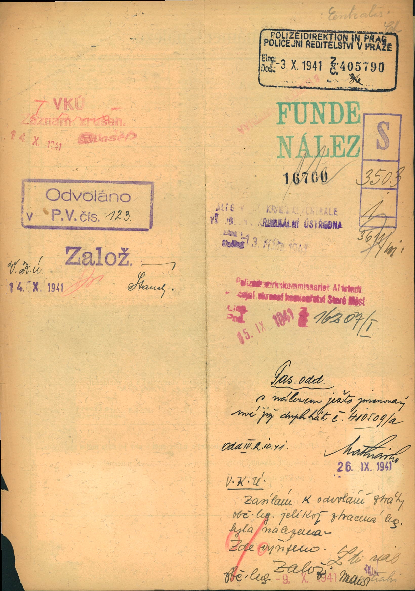 Alexander Schmiedt, official report of found ID by the Police Directorate in Prague