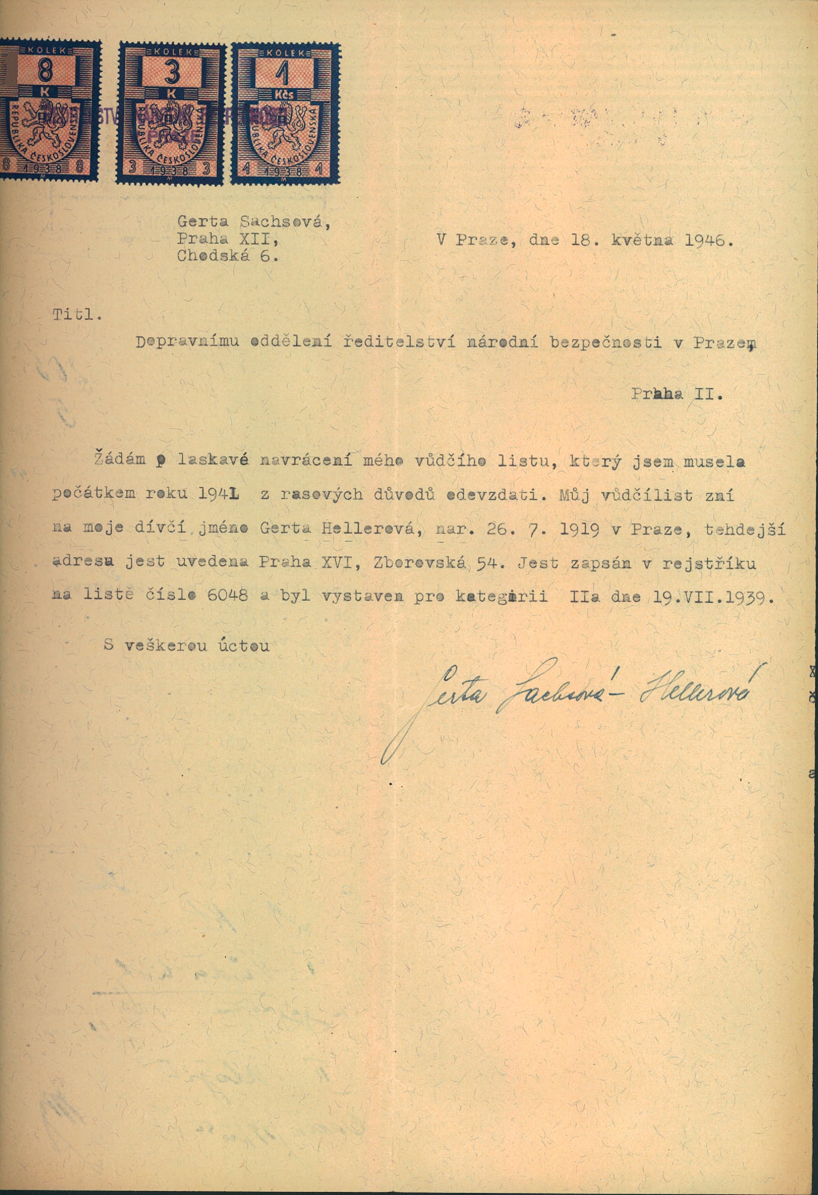 Gerta Sachsová requires getting back her driving license