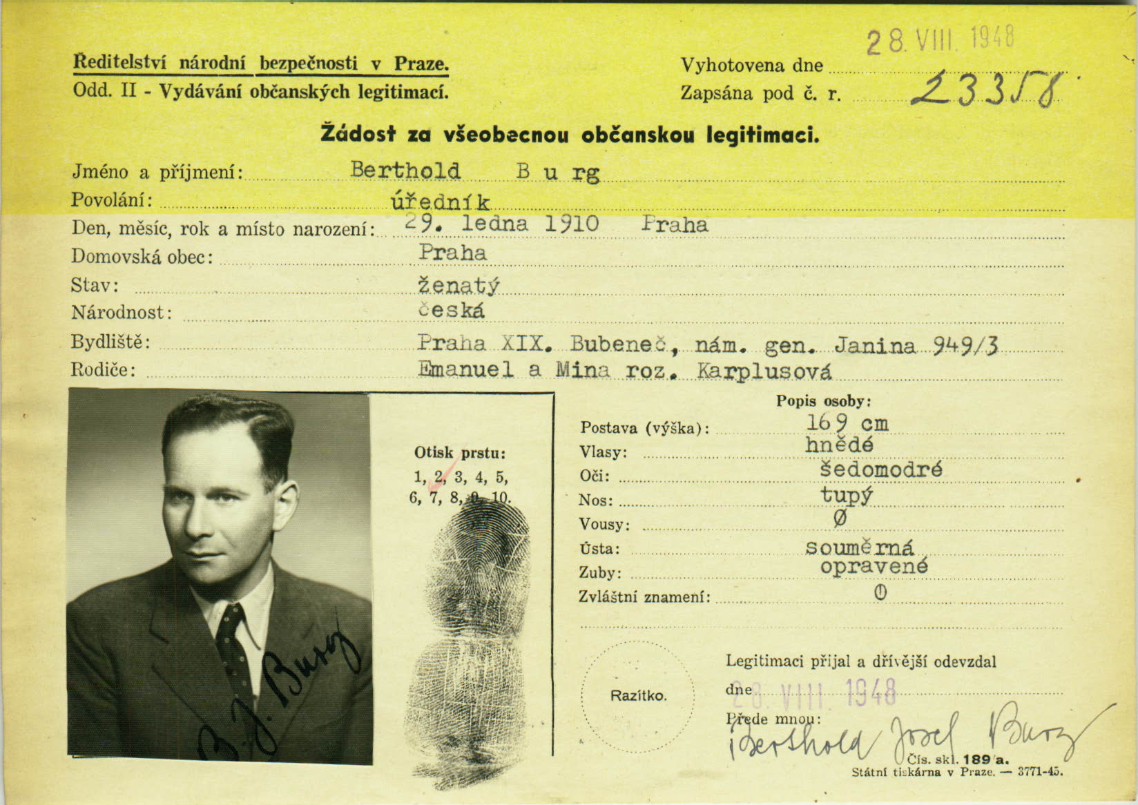 ID application of Berthold Burg