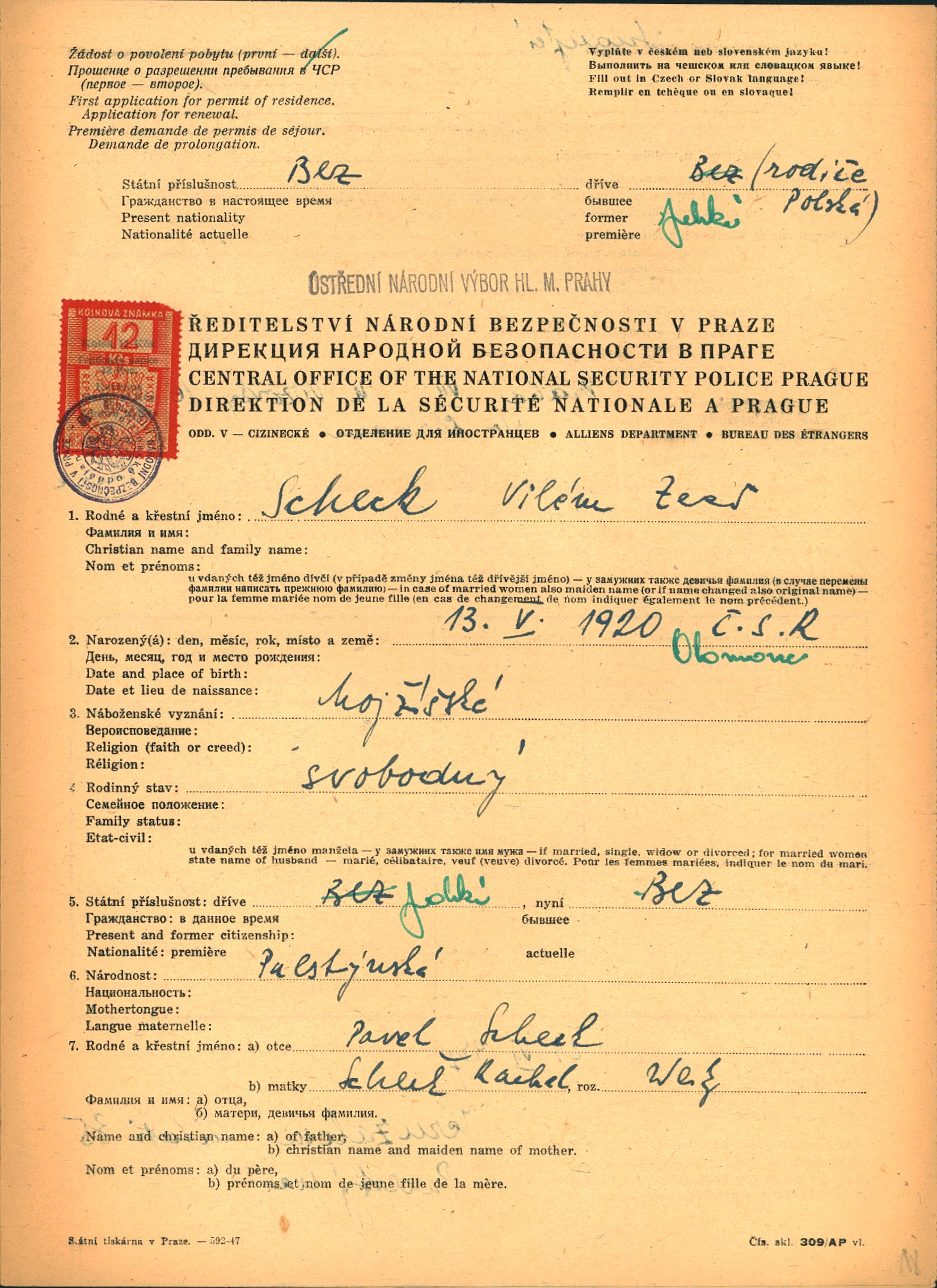 Application of Zeev Scheck for a resident permit