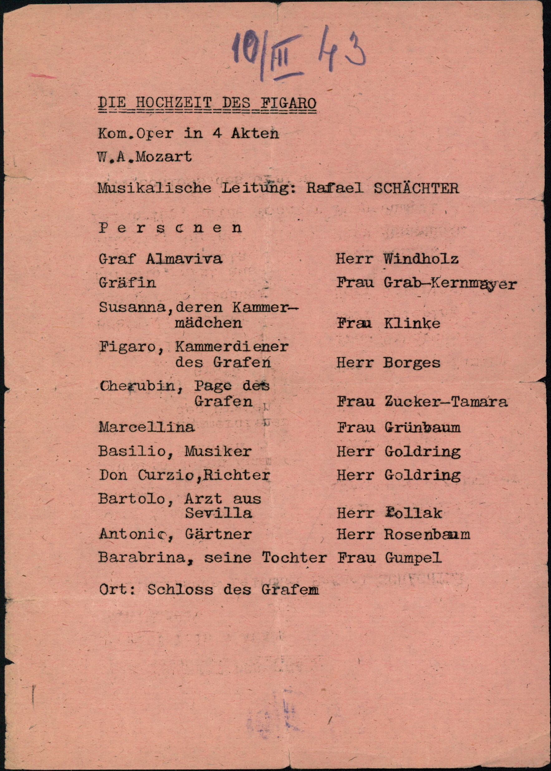 Programme of The Marriage of Figaro from the Theresienstadt ghetto