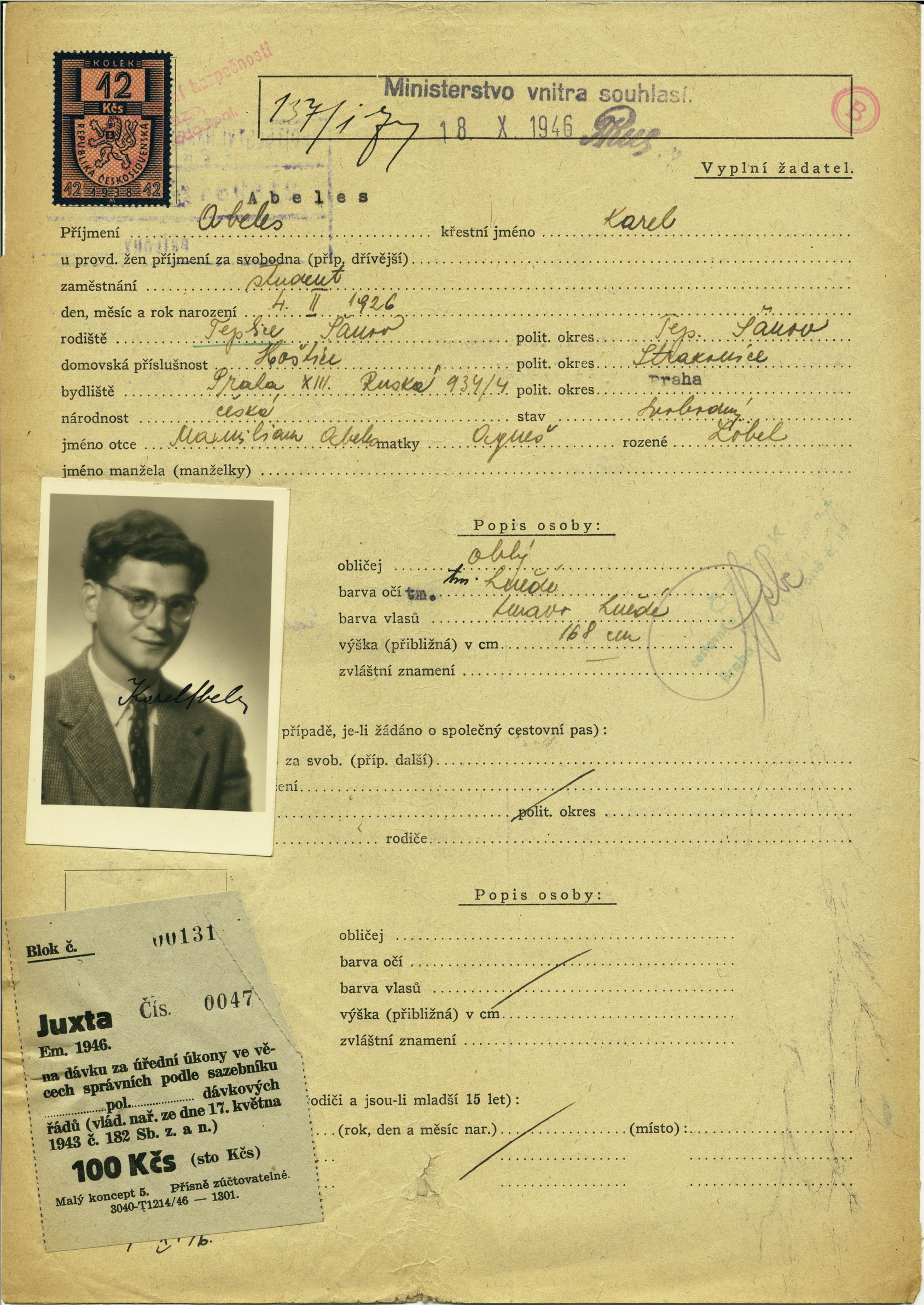 Passport application of Karel Abeles