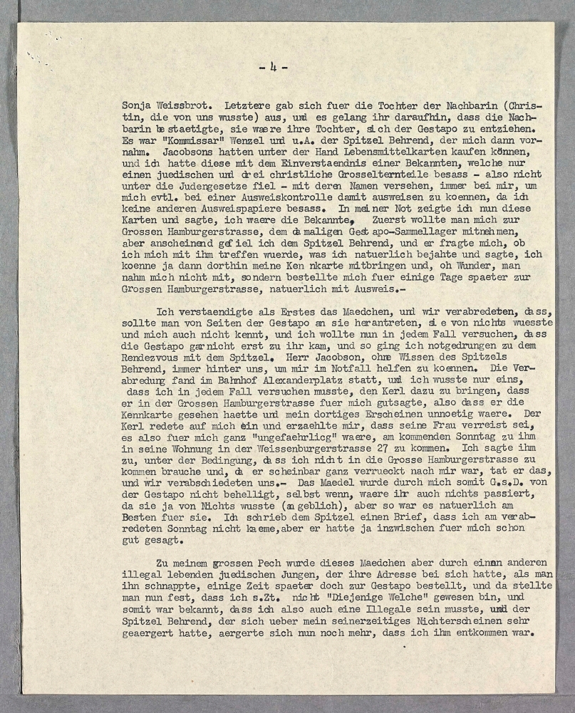 and said I was the acquaintance. At first they wanted to take me with them to Grosse Hamburger Strasse, the