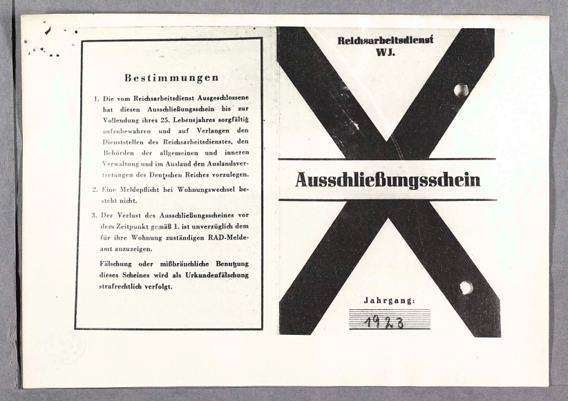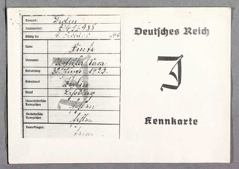 Daene hatten mir einen Leihbuecherausweis und ein Arbeitsbuch ueberlassen, welches sie von einer ehemaligen christlichen Angestellten, die noch weiter bei ihnen angemeldet war, behalten hatten. (Diese Angestellte, welche ein Kind hatte, war froh darueber, denn sonst waere sie anderweitig arbeitsverpflichtet worden, so galt sie weiter als arbeitend).