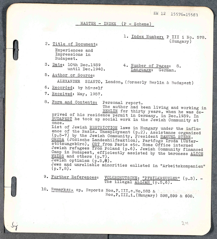 The Jewish organisations in Hungary for their part took measures to help economically victimised Jews, supporting those dismissed, moving the unemployed into other occupations, and so on. Since I had experience of working in just this area of economic policy, I was asked by the leaders of the Budapest congregation, the chairman Samuel Stern and the general secretary Mr Eppler, to contribute to the work of the newly established agencies.