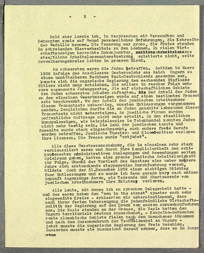 My Experiences and Impressions in Budapest in the Period of the first Jewish Laws in Hungary (1939-1940)